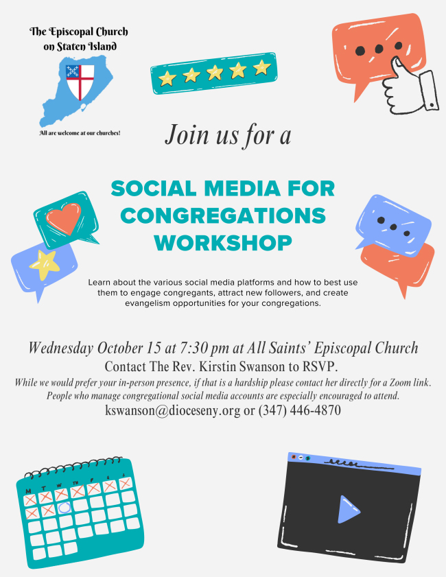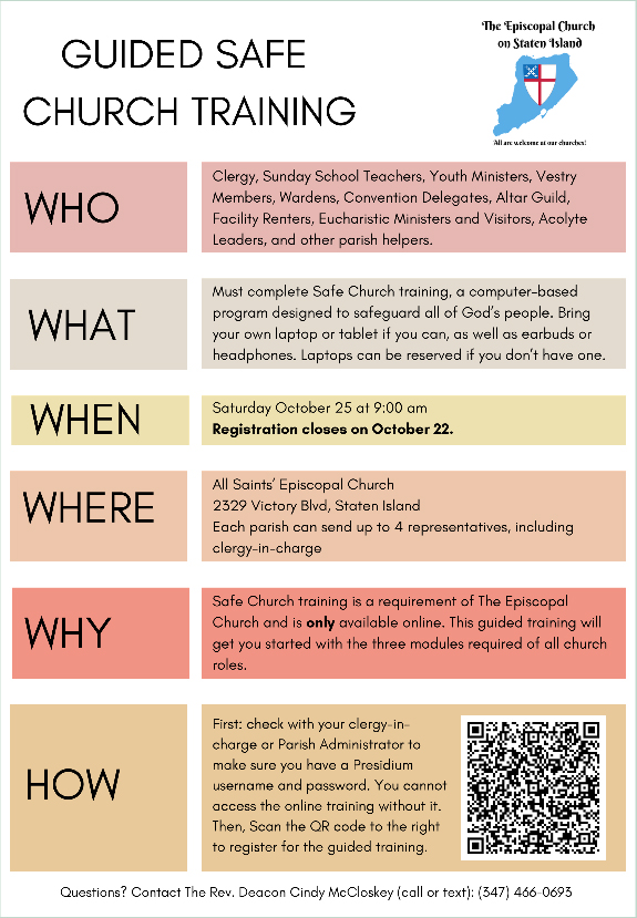 Trunk or Treat: Our Trunk or Treat is scheduled for Sunday, October 26. We need your help to make this event a success! Please get in touch with Catherine Barnett (718-974-8197) and let her know if you will decorate your car, donate candy, or help with the Halloween-themed refreshments!
