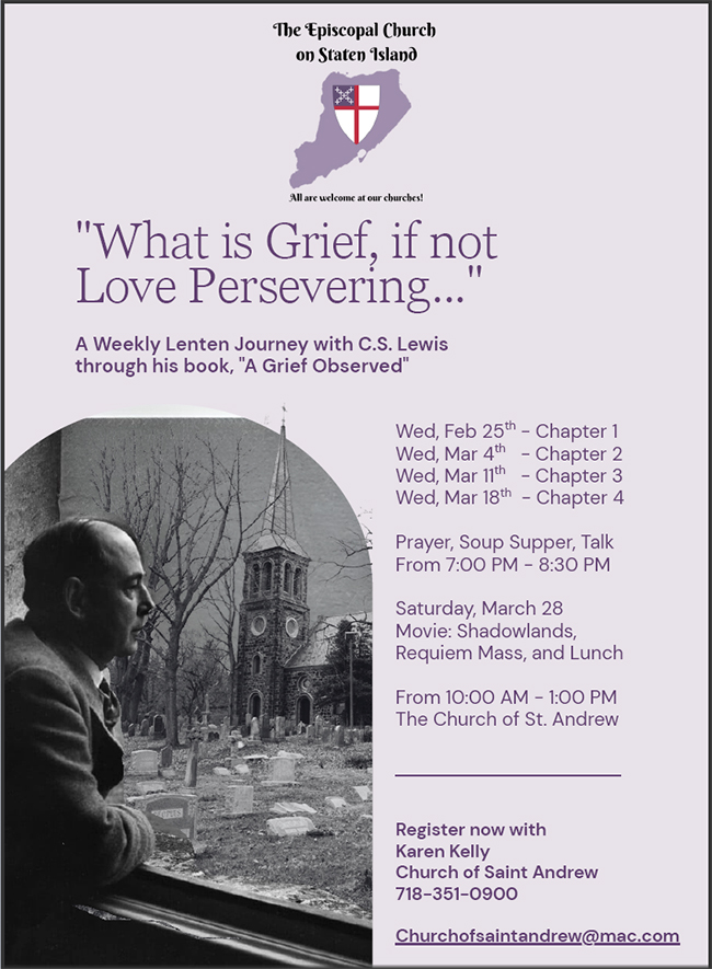 - A Weekly Lenten Journey with C.S. Lewis through his book, "A Grief Observed"